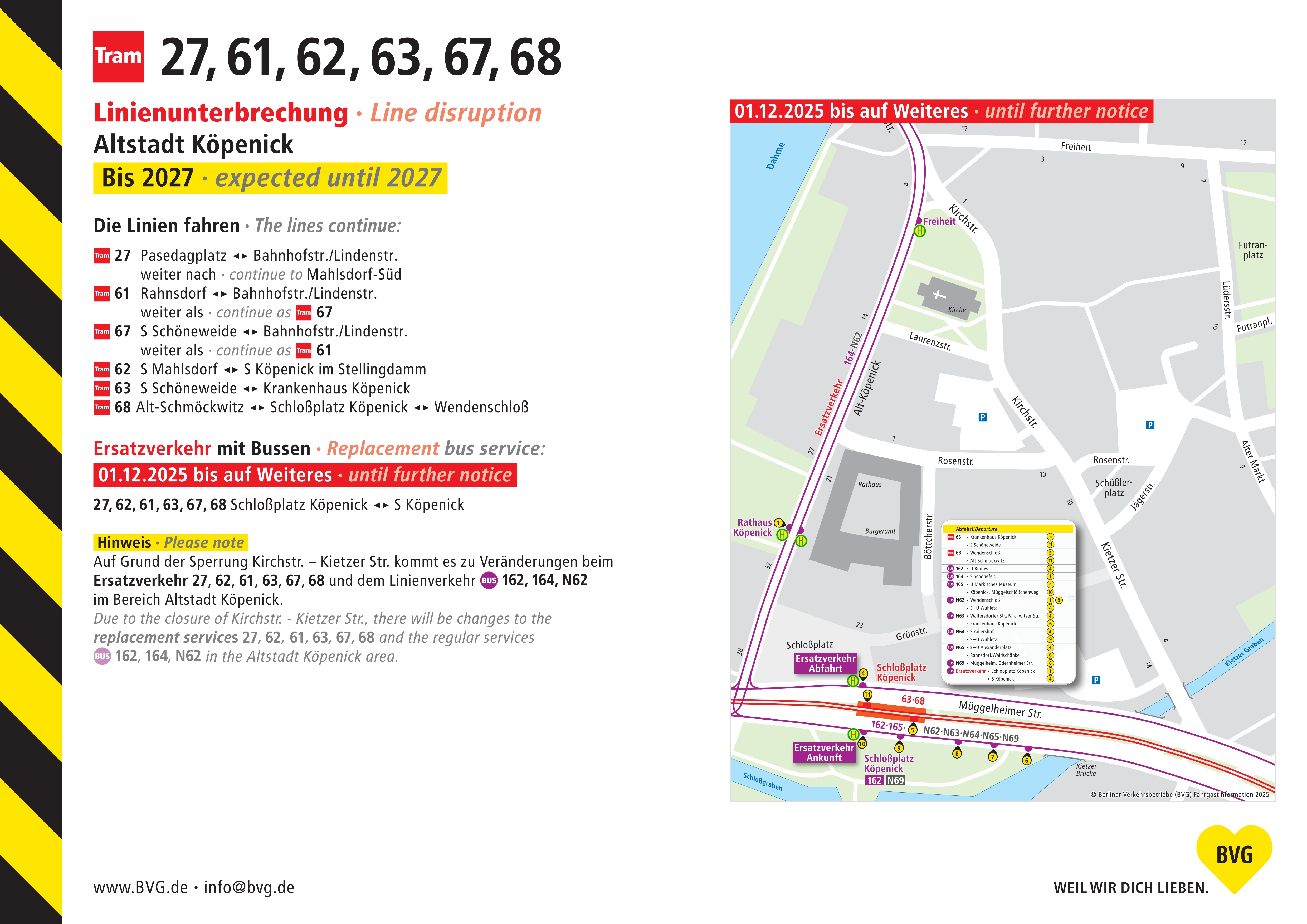 Aufgrund ungeplanter #Bautätigkeiten in der Straße #Freiheit und #Lüdersstraße kommt es vsl. ab dem 1. Dezember 2025 zu einer Änderung im #Ersatzverkehr in der Altstadt Köpenick.